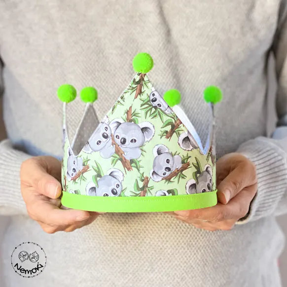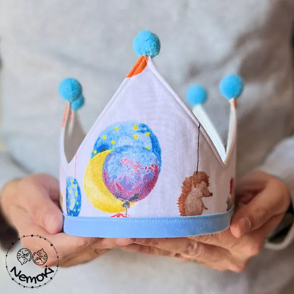 Notre jolie couronne : Il est fait de tissu imprimé 100% coton biologique avec certificat Oeko Tex Toucher doux et rembourré Peut être lavé, maximum 30 degrés Il peut être repassé, mais il faut faire attention au velcro et aux pompons.